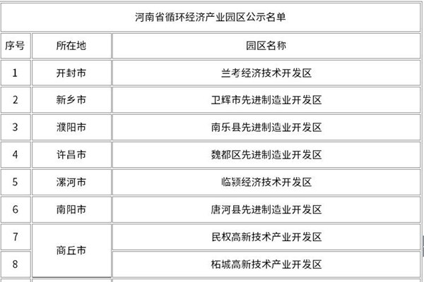 近日,河南省循环经济产业园区名单正式发布,初步确定兰考经济技术开发区等15个园区入选。 关于河南省循环经济产业园区名单的公示 根据《河南省发展和改革委员会 河南省工业和信息化厅关于印发〈河南省加快推进循环经济产业园区建设实施方案〉的通知》(豫发改环资〔2023〕239号),经地市推荐、材料审核、专家评议,初步确定兰考经济技术开发区...