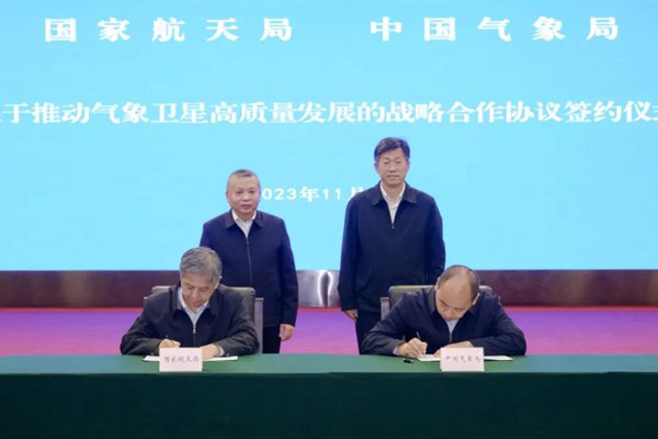11月9日,中国气象局与国家航天局在京签署战略合作协议。双方将充分发挥科技、应用、人才、资源等优势,在科技创新、平台建设、人才培养等方面深化合作,共同推进风云气象卫星事业高质量发展。中国气象局党组书记、局长陈振林,国家航天局局长张克俭见证签署仪式并座谈交流。中国气象局副局长曹晓钟,国家航天局副局长徐占斌分别代表双方签署协议,国家航天局...