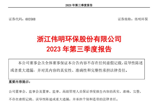 近日,浙江伟明环保股份有限公司(简称:伟明环保)发布《2023年第三季度报告》。报告期,伟明环保营业收入17.28亿元,同比增长62.15%;归属于上市公司股东的净利润5.45亿元,同比增长56.52%;归属于上市公司股东的扣除非经常性损益的净利润5.39亿元,同比增长58.15%;基本每股收益0.32元。 环境治理主业上,伟明环保...