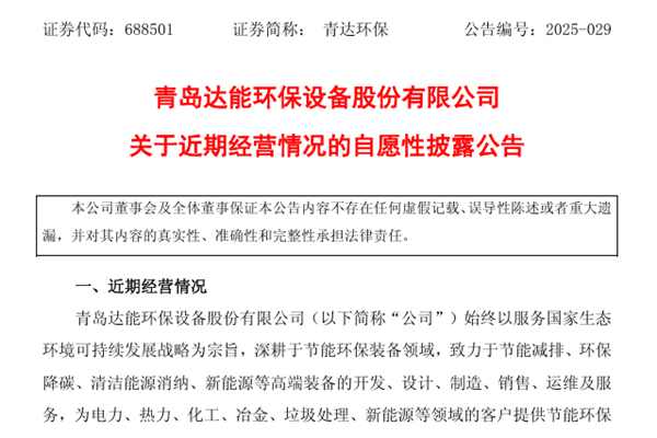 6月18日晚间,青岛达能环保设备股份有限公司(简称:青达环保)发布公告称,2025年1-6月,公司预计实现营业收入9亿元-12.5亿元,较上年同期增加75.12%-143.22%。青达环保表示,受益于国家新建火电投资加速及存量机组升级改造等一系列利好政策,公司交付的节能环保处理系统产品增加;同时,公司建设的胶州市李哥庄镇120MW 渔...