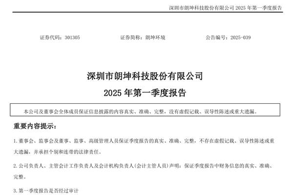 深圳市朗坤科技股份有限公司(简称:朗坤环境)近日发布《2025年第一季度报告》。报告期内,朗坤环境实现营业收入为4.12亿元,同比下降16.5%;归母净利润为7684万元,同比上升94.8%;扣非归母净利润为7594万元,同比上升102.3%;经营现金流净额为1.2亿元,同比下降21.3%。图源:朗坤环境公告 申明:本站发布此信息的...