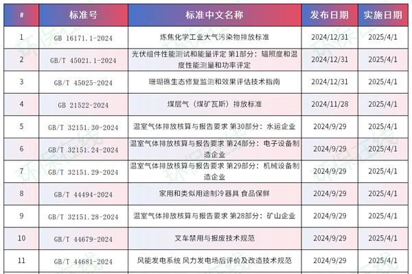 据截至2025年3月3日发稿时,全国标准信息公共服务平台显示,即将实施的国家标准有1513条,经环保在线粗略整理,其中涉环保的有197项,2025年实施的174项。 《炼焦化学工业大气污染物排放标准》、《叉车禁用与报废技术规范》、《风能发电系统 风力发电场后评价及改造技术规范》、《再生铜及铜合金棒线材》、《绿色产品评价 纸和纸制品》...