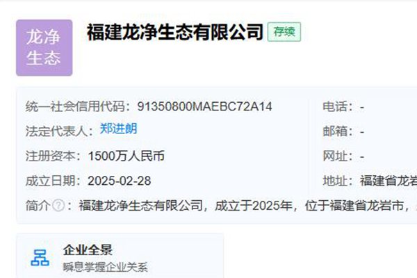 近日,福建龙净生态有限公司成立,注册资本1500万元,属生态保护和环境治理业,由福建龙净环保股份有限公司100%持股。 该公司经营范围如下↓ 【一般项目】水污染治理;土壤及场地修复装备制造;土壤污染治理与修复服务;土壤环境污染防治服务;土壤及场地修复装备销售;农业面源和重金属污染防治技术服务;地质灾害治理服务;固体废物治...