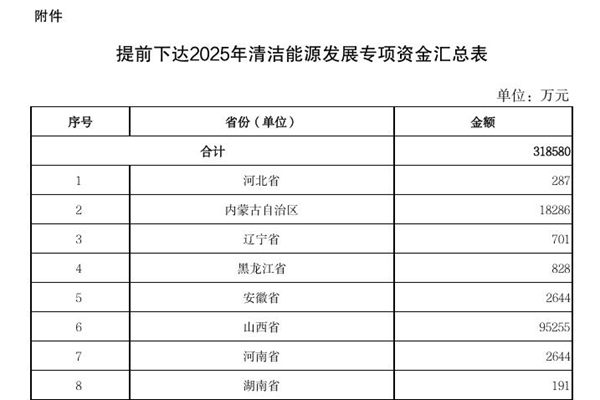 财政部关于提前下达2025年清洁能源发展专项资金预算的通知财建〔2024〕392号 有关省、自治区、直辖市财政厅(局),新疆生产建设兵团财政局: 根据《清洁能源发展专项资金管理暂行办法》(财建〔2020〕190号)有关要求,现提前下达2025年清洁能源发展专项资金预算,用于支持非常规天然气开采利用,待2025年预算年度开始后按程序拨付...