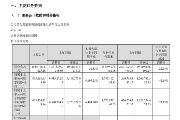 2024年10月26日,金风科技股份有限公司发布《2024 年第三季度报告》。 报告显示,前三季度实现营业收入358.39亿元,同比增长22.24%;归属于上市公司股东的净利润17.92亿元,同比增长42.14%;归属于上市公司股东的扣除非经常性损益的净利润17.77亿元,同比增长73.15%;基本每股收益0.4093元。 申明:...