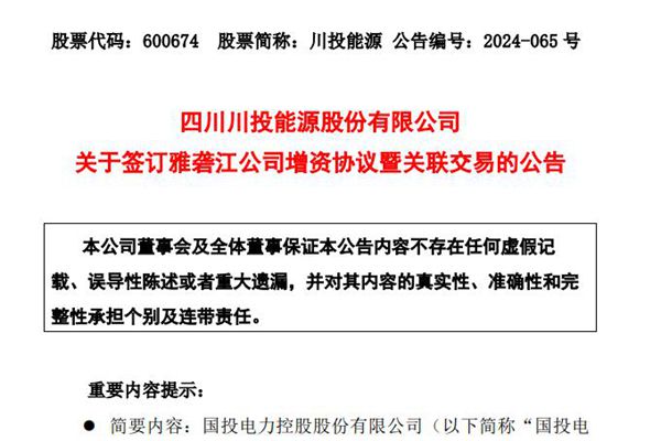 四川川投能源股份有限公司(简称:川投能源)近日发布《关于签订雅砻江公司增资协议暨关联交易的公告》。 根据该公告,国投电力控股股份有限公司(下称“国投电力”)与川投能源拟签署《关于向雅砻江流域水电开发有限公司增资事宜之协议》,协议约定共计向雅砻江流域水电开发有限公司(下称“雅砻江公司”)...
