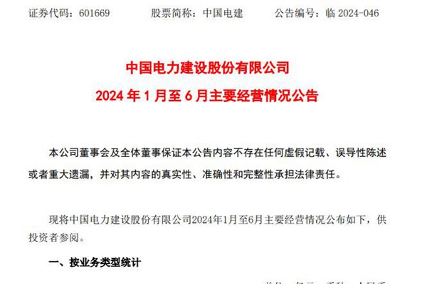 7月22日,中国电建公告披露2024年1月至6月主要经营情况。据悉,今年上半年,中国电建新签项目总数5119个,新签合同总金额为6488.87亿元,较去年同期增长7.50%。 其中,能源电力业务新签项目数量为2914个,新签合同金额3842.31亿元,同比增长20.76%;水资源与环境业务新签项目数量737个,新签合同金额899.2...