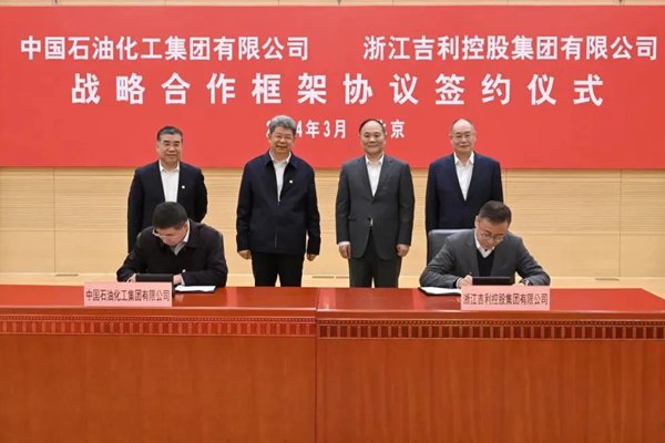 3月9日,吉利控股集团与中国石油化工集团(简称中国石化)在北京签署战略合作框架协议。中国石化集团公司董事长、党组书记马永生会见了吉利控股集团董事长李书福、副董事长杨健一行,并共同见证签约。 马永生和李书福在会谈时就进一步加强能源转型等领域合作深入交换意见,表示将进一步拓宽合作领域、创新合作模式、延伸产业链条,为保障国家能源安全,培育...