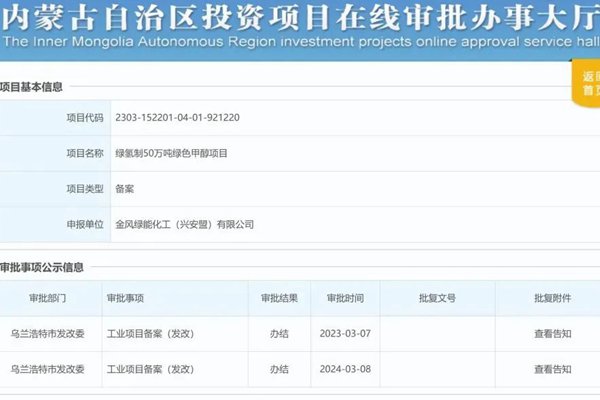 近日,由金风绿能化工(兴安盟)有限公司申报的绿氢制50万吨绿色甲醇项目备案通过,该项目主要建设生物质发电装置,绿色甲醇合成装置等主要生产线及配套公辅工程,建成后年产50万吨绿色甲醇。总投资30亿元。 项目单位:金风绿能化工(兴安盟)有限公司 建设地点:兴安盟--乌兰浩特市--兴安盟经济技术开发区 总投资:300000万元 计划...