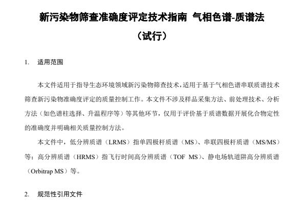 2022年5月,国务院办公厅印发《新污染物治理行动方案》(国办发〔2022〕15号),提出构建有毒有害化学物质环境风险管理“筛、评、控”体系。为落实方案要求,加强新污染物筛查的质量控制,保障新污染物筛查定性结果准确可靠,中国环境监测总站结合前期研究工作,组织编制了《新污染物筛查准确度评定技术指南 气相色谱-质谱...