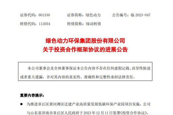 近日,绿色动力环保集团股份有限公司(简称:绿色动力)发布公告称,公司在12月11日与章丘区人民政府正式签署了《投资合作协议》,以进一步推进章丘区黄河滩区迁建产业高质量发展低碳环保产业园项目(下称“项目”)实施。绿色动力曾预计,项目总投资将超过人民币100亿元(含入园企业的投资)。 根据此次公告,项目拟建园区共...