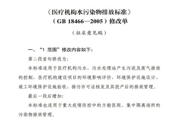近日,生态环境部发布通知称,拟公开征求国家标准《医疗机构水污染物排放标准》(GB 18466-2005)修改单意见,截止时间为2023年11月20日。 新版标准适用范围调整为“医疗机构污水、污水处理站产生污泥及废气排放的控制,医疗机构建设项目的环境影响评价、环境保护设施设计、竣工环境保护设施验收、排污许可证核发及其投产后...