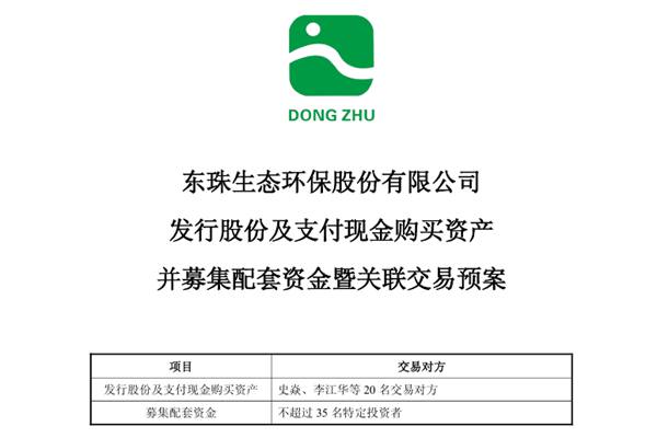 近日,东珠生态环保股份有限公司(简称:东珠生态)正式发布《发行股份及支付现金购买资产并募集配套资金暨关联交易预案》。根据该预案,东珠生态将通过发行股份及支付现金的方式向史焱、李江华等20名交易对方购买其合计持有的凯睿星通信息科技(南京)股份有限公司(下称“凯睿星通”)89.49%股份,并募集配套资金。股票为人民...