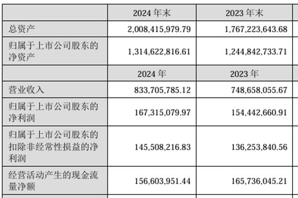 南京大学环境规划设计研究院集团股份公司(简称:南大环境)近日发布《2024 年度报告摘要》。报告期内,南大环境实现营业总收入8.34亿元,同比增长11.36%;归母净利润1.67亿元,同比增长8.33%;扣非净利润1.46亿元,同比增长6.79%;经营活动产生的现金流量净额为1.57亿元,同比下降5.51%。 资料显示,南大环境主营...